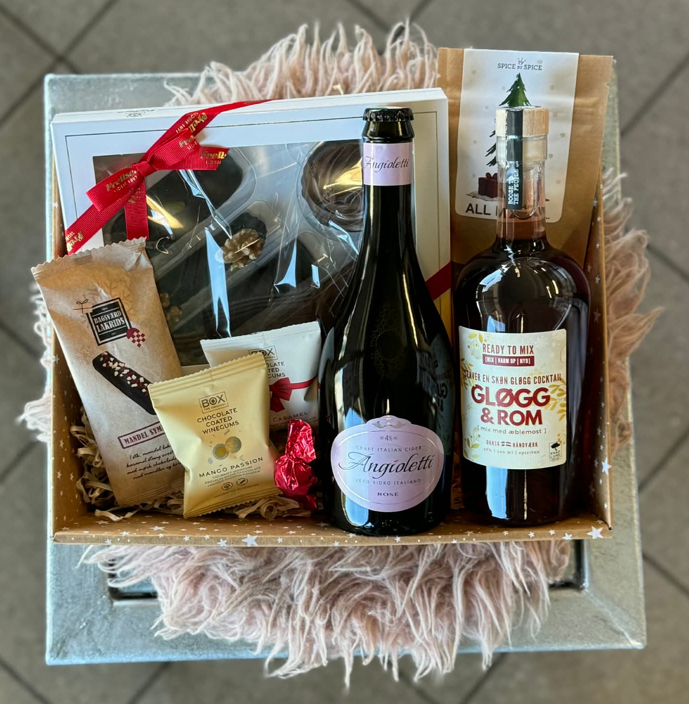 En lækker gavekurv fyldt med udvalgte godter til forkælelse. Perfekt som værtindegave, fødselsdag, tak-for-hjælpen eller bare fordi nogen fortjener lidt ekstra.